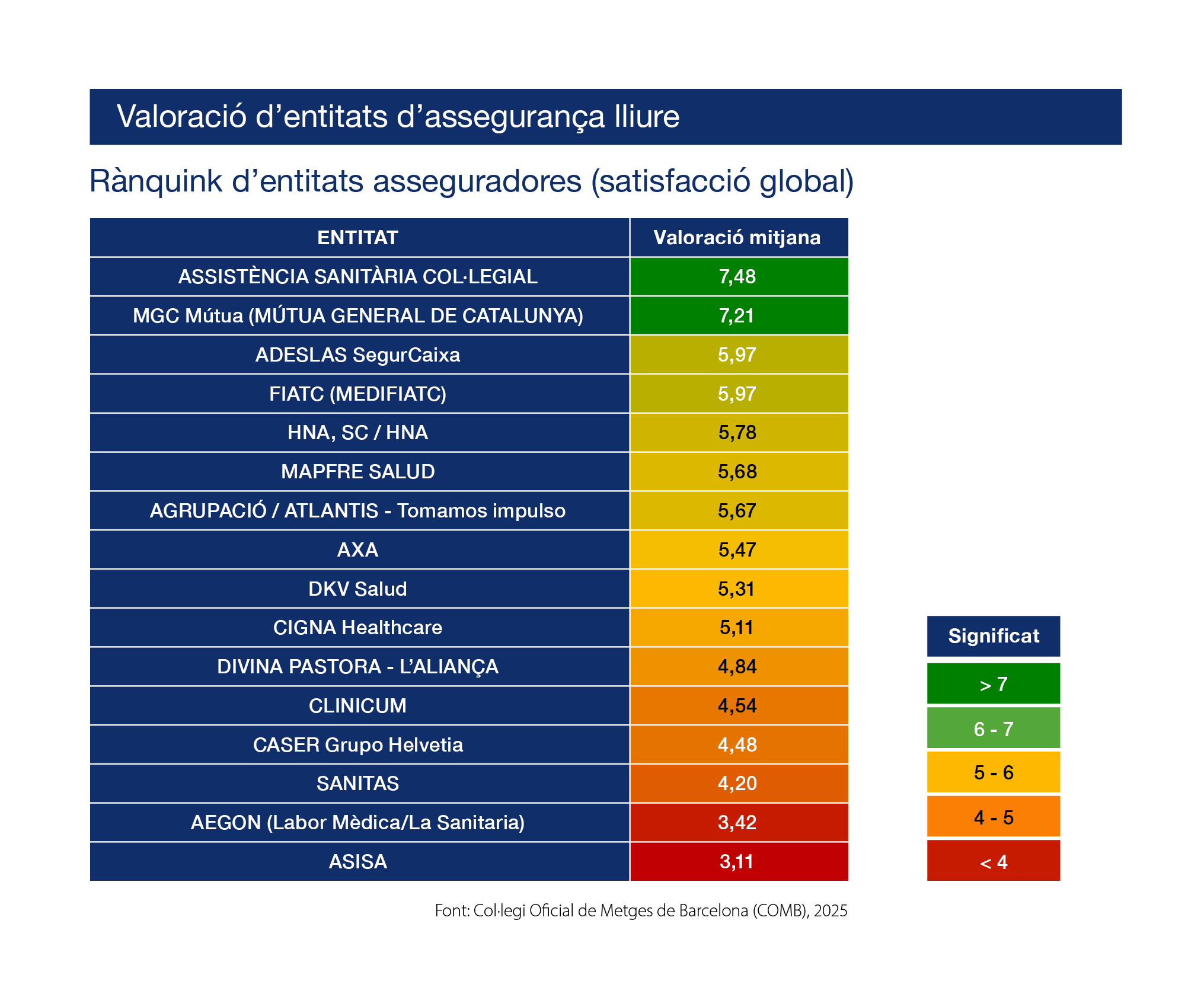 Aquest posicionament reafirma que MGC Mútua és la primera entitat de caràcter mutualista al rànquing, un aspecte que reflecteix la solidesa del model i la relació de confiança que manté amb el col·lectiu mèdic.